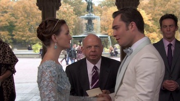 Let’s get down to the nitty gritty! I really loved the finale! It helped that I had no expectations before watching. I was willing to take whatever Stephanie Savage was going to throw my way. How could I possibly complain? Chuck and Blair’s wedding at The MET was quick but oh so sweet. We got the best lines from the bride and groom. Chuck: “3 words, 8 letters”, Blair: “1 word, 3 letters, Yes.” Even though the police were coming to bring them in for questioning, it was such a Chuck and Blair kind of thing to say.