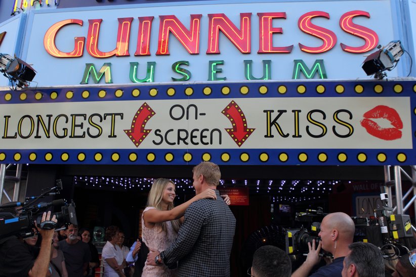 The first date of the night was a one on one date with Lesley, who managed to sneak in a coy kiss the last time that she and Sean were together, a move that seemed to inspire the date choice for the evening. After arriving at the Guinness World Record museum, a date that Lesley privately admitted was a bit lack luster, Sean pointed out to Lesley that his dad had, in fact, won a world record for driving through multiple states in the shortest amount of time. Chris Harrison then made a “surprise” appearance and informed the couple that they would be trying to set the world record for the longest on screen kiss, which I expected would mean standing lip to lip for hours on end. It turns out that the record was only three minutes and 16 seconds, making the time to beat a bit lack luster as well.